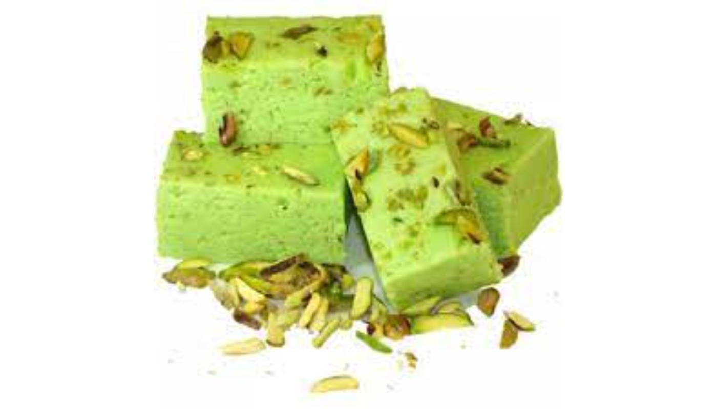 Pista burfi made with pisatcheos, sugar, and flavored with cardamom.