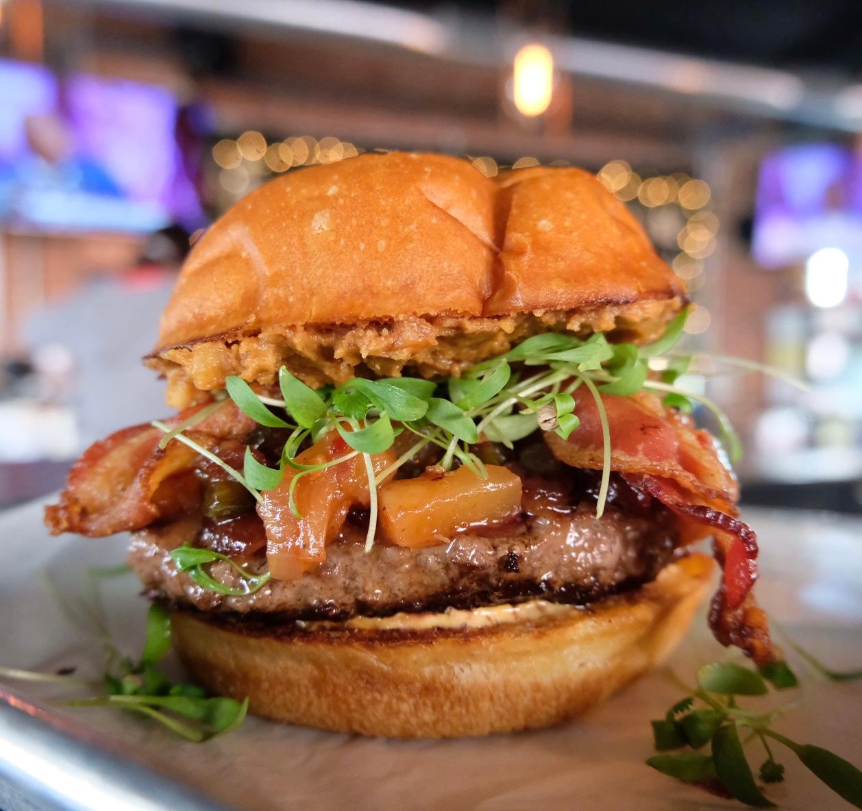 House made Thai peanut butter sauce, bacon, pineapple chutney, sriracha aioli, brioche bun.