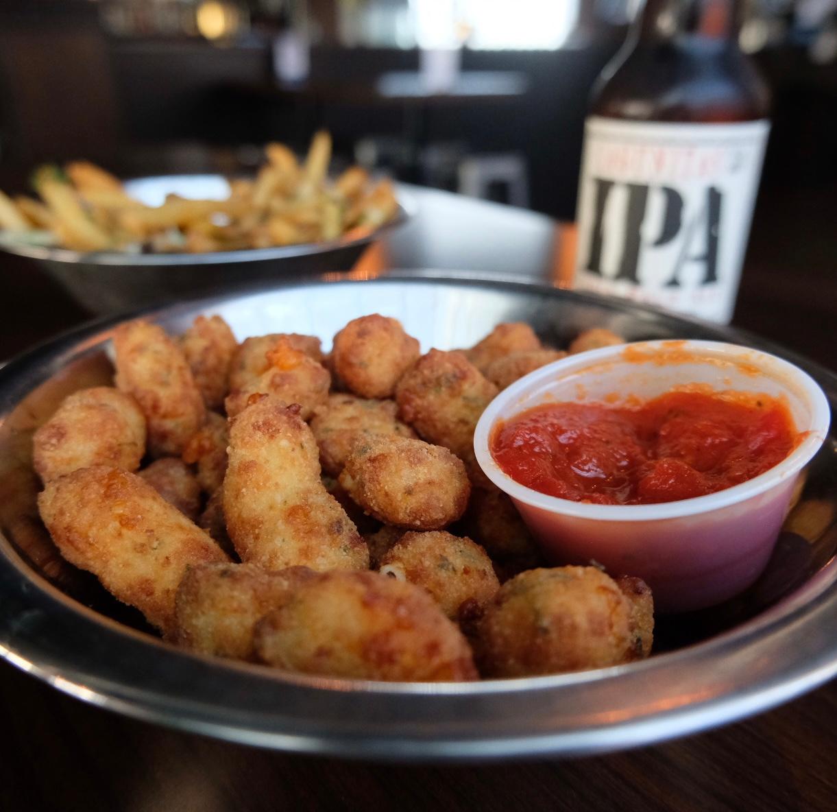 Three lightly salted Bavarian pretzel sticks, served with beer cheese dip and honey mustard. (Additional sticks +1.25)