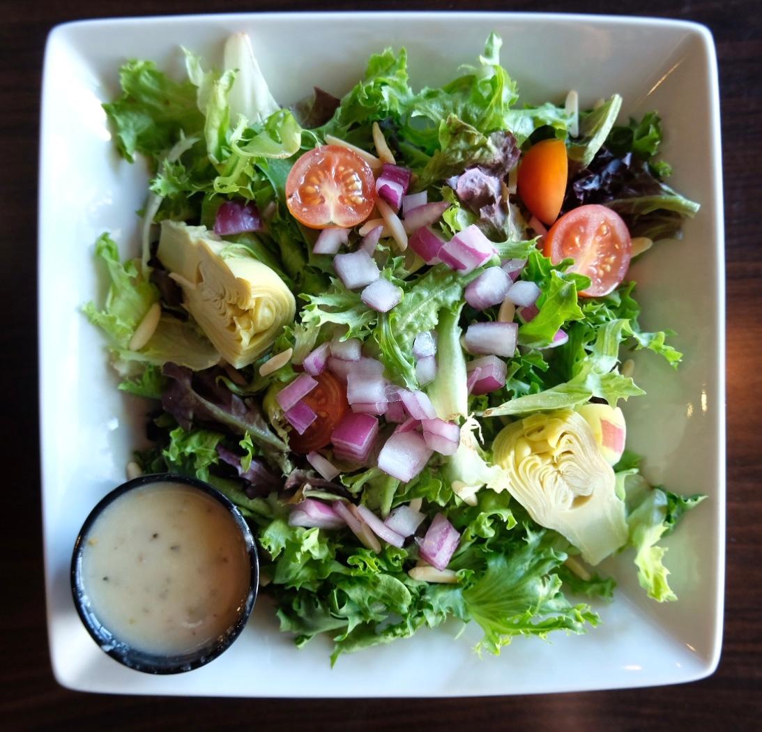 Mixed greens, tomato, red onion, artichoke hearts, almonds, choice of dressing.